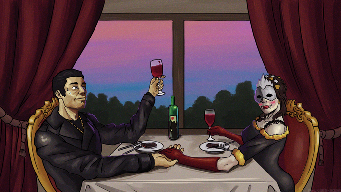 Дело в том, что я никогда не просил ни у кого заказы, и позавчера попросили сделать фанарт. Как оказалось, это должен быть арт к моду тёмно фентезийному моду Daydream in Black на игру Hearts of Iron IV, где в 1980х есть инопланетяне, вампиры и прочая нечисть. На рисунке должны были быть изображены Бойд Райс и вампирша Эльске I, одни из важных персонажей в моде.