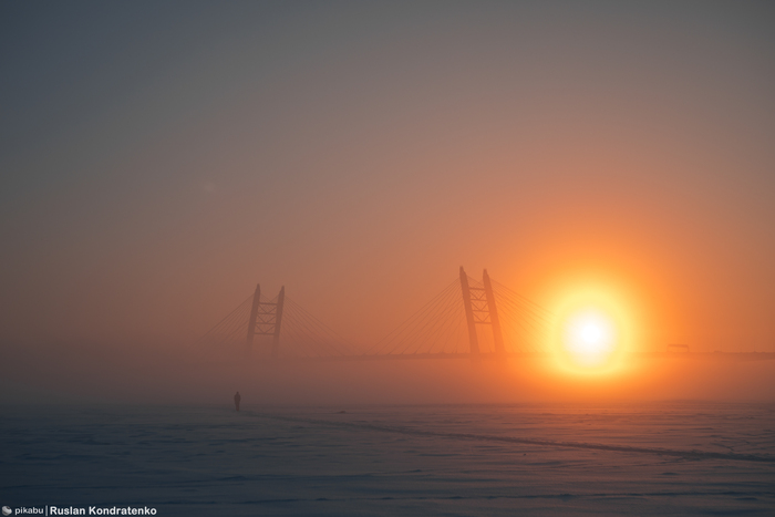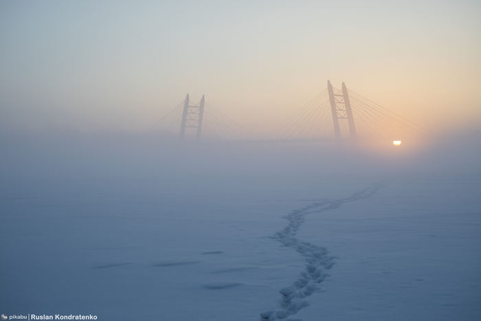 Зимний туман у Корабельного фарватера и вантового моста⁠⁠