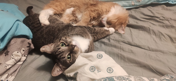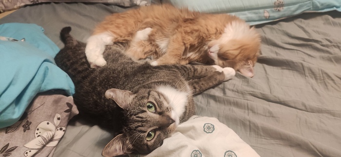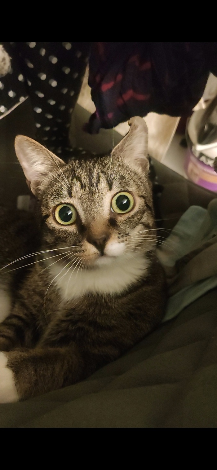 Котейка очень трусливый, но безумно ласковый, мы очень скучаем и ищем его с каждой секундой всё активнее и активнее, даже старший братишка ходит по квартире, везде заглядывает и мяучит...