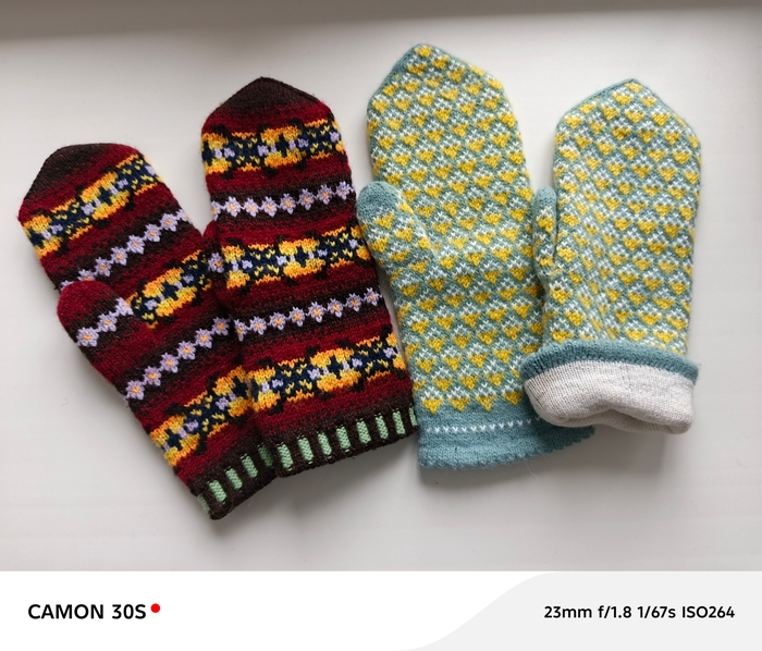 Варежки с мухоморами из натуральной шерсти для ценителей экологичных материалов.