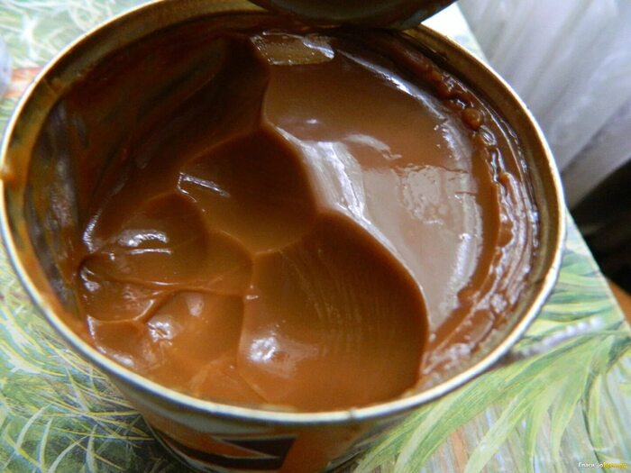 Купил вчера в ашане сгущенку варенную, консистенция не вызывает доверия. Кто нибудь может сказать было такое у вас и что за продукт в банке!?