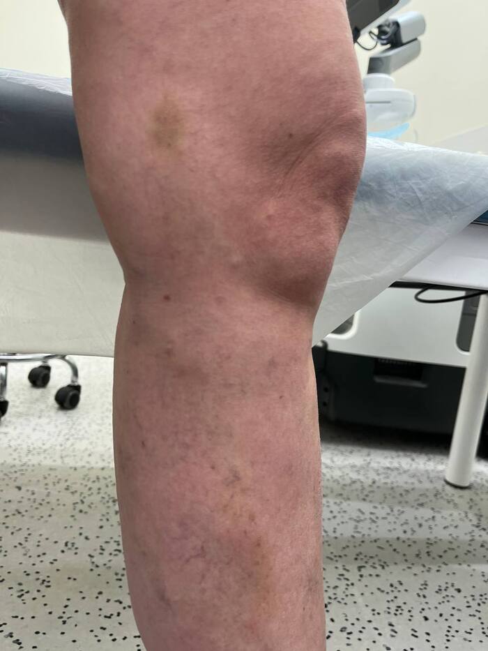 По внутренней поверхности бедра и голени проходит основная поверхностная вена (называется большая подкожная вена - но визуально она не видна), она в верхней трети бедра впадает в глубокую вену.