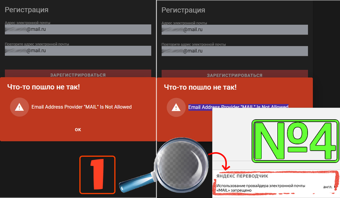 1. По каким то причинам по почте mail.ru нельзя зарегистрироваться, так что я ввёл почту gmail.com.