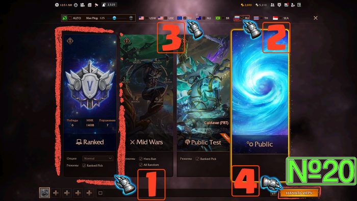 2. Выбираем "RU" (чтобы набирались игроки с РФ сервака наверно, я пробовал ставить только ру и ждал около 30 минут поиска игры, больше не стал экспериментировать).