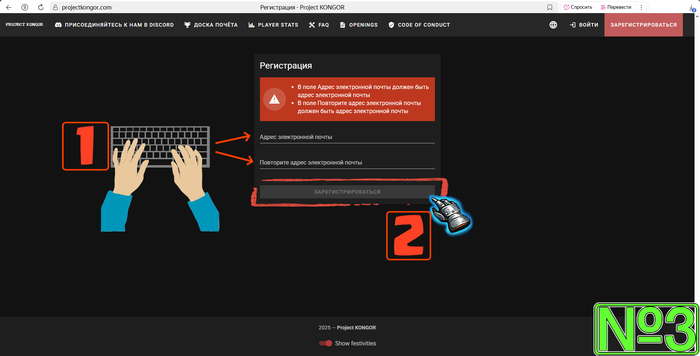 1. Переходите по ссылке https://projectkongor.com/ и жмёте кнопку "зарегистрироваться".