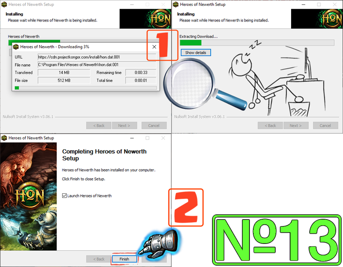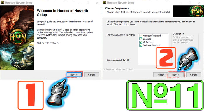 1. Обратите внимание установщик HoN обманывает, на самом деле он будет занимать 7+ гигов