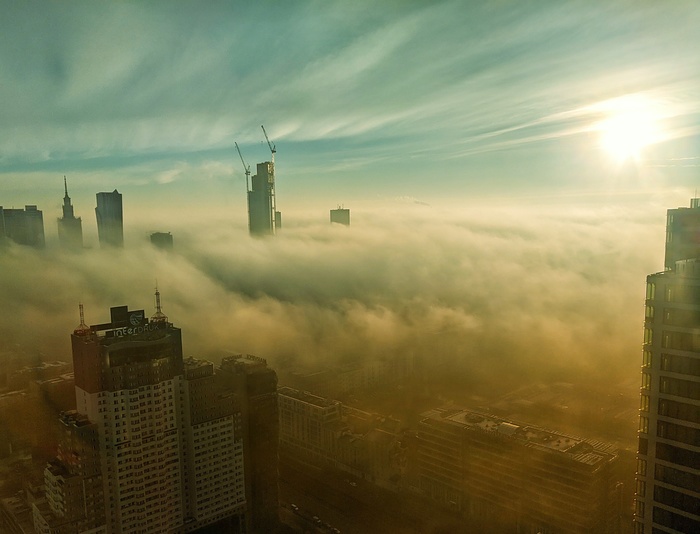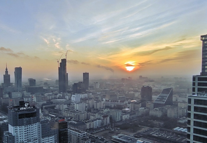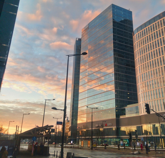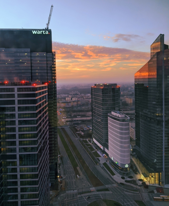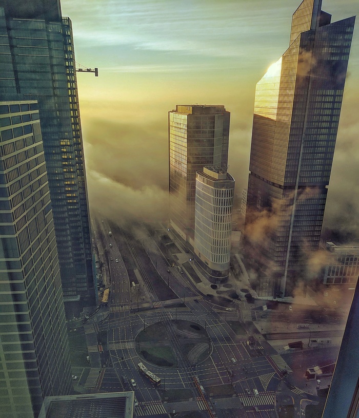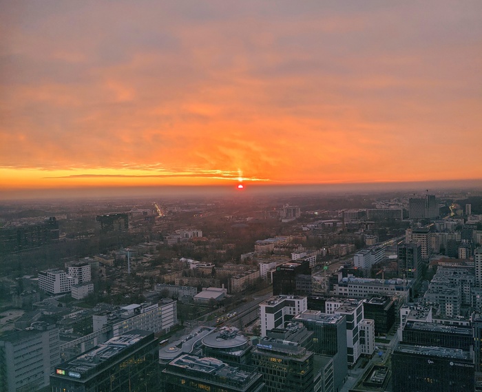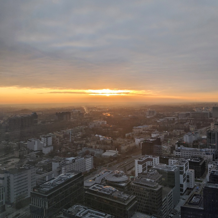 Работаю сейчас в высотке на 38 этаже. С такой высоты вид на рассветы и закаты просто завораживающий.