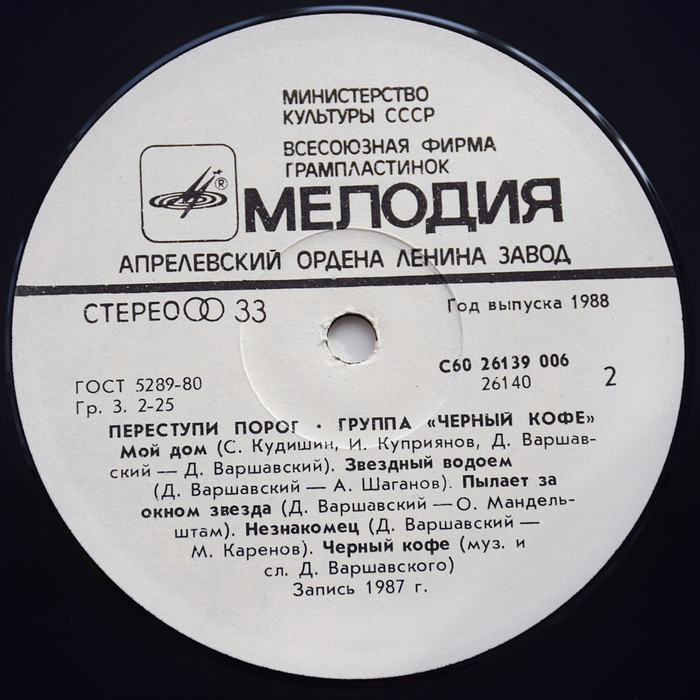 Чёрный Кофе - Переступи Порог (1987) LP
