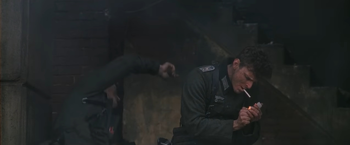 И тут внезапно появляются немцы, которые обстреливают перебегающих от здания к зданию снайперов и портят Куликову новые штаны. Пока один снайпер наблюдает, Куликов рассказывает Зайцеву, что он шестнадцать месяцев проучился в Германии, а так про то, какая крепкая дружба была между Германией и СССР и как фашистский меч ковался в СССР.