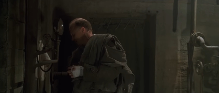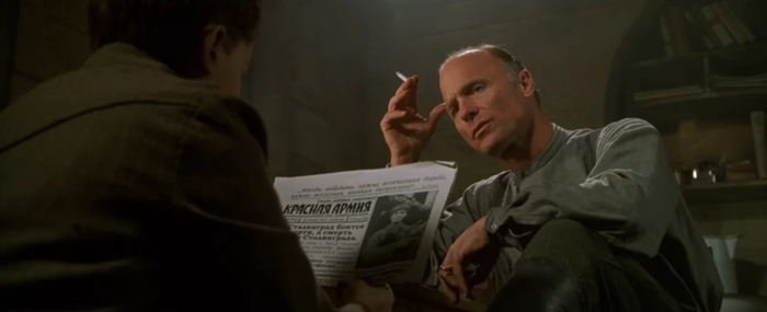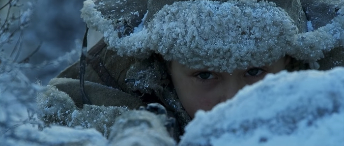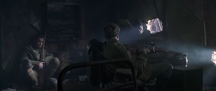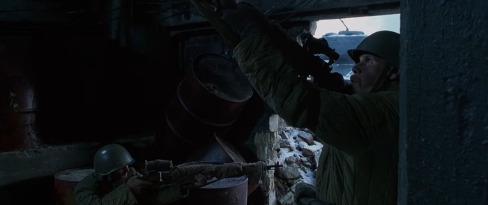 Так как накал всей антисоветской клюквы, в основном приходится на первые сорок минут фильма, а дальше её будет чуточку поменьше, по постараюсь остальную часть разбора уложить в одну статью. Пока мальчик Саша чистит немецкому майору сапоги, Зайцев на катере Хрущева переправляется на другой берег Волги. Зайцев политруку расхваливает немецкого снайпера, который заманил их в ловушку и не сменил позицию, пользуясь свой потрясающей интуицией.
