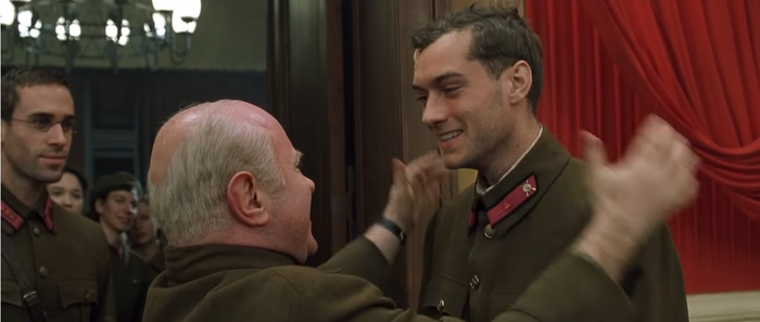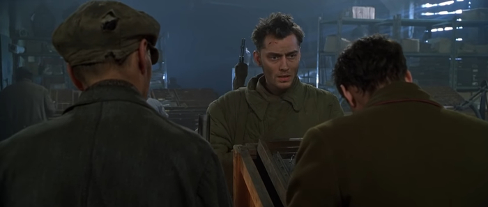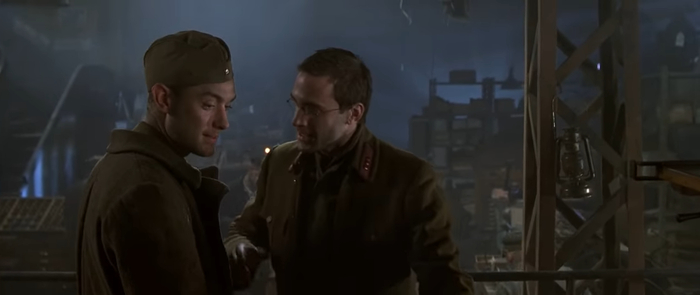 Самый сильный контраст в фильме – это сравнение Зайцева и Кёнига. Даже факт того, что немецкого снайпера играет блистательный и талантливый Эд Харрис, а советского – Джуд Лоу, о многом говорит. Эд Харрис в этом фильме предельно хорош. Он действительно вжился в роль немецкого снайпера. Не только его охотничий взгляд, но и мимика, движения, речь – всё обыграно на высшем уровне. Ребята, ну вот любо-дорого посмотреть.