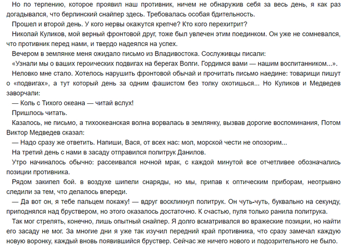 И как нетрудно заметить, Куликова тут не убили и он пережил дуэль против опытного немецкого снайпера.