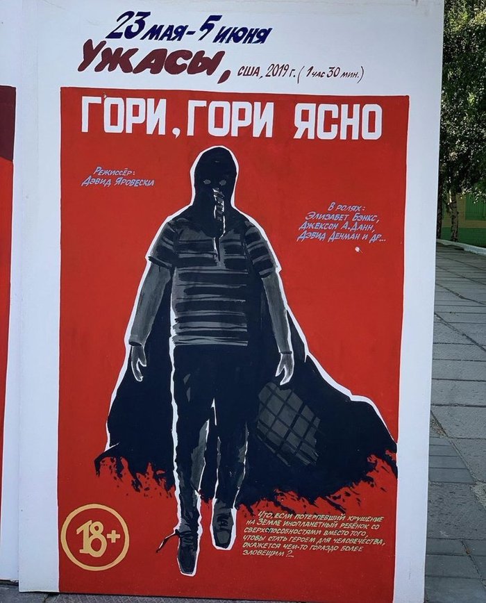 Я понимаю, что про мстителей уже написано и нарисовано много, но оказался в Камышине и не смог не выложить очередной ламповый шедевр иллюстратора камышинского кинотеатра