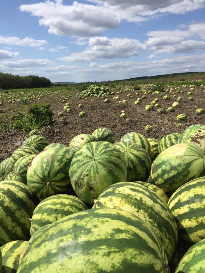 Ну и не мог не поделиться полем-бахчей ( не знаю почему все говорят "бахча"). Как разбивали арбуз коленом, ели руками и кидались ими выкладывать не буду)