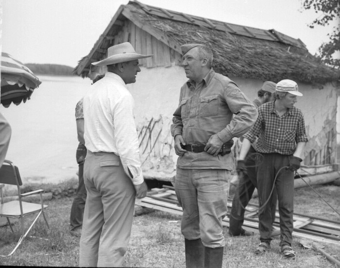 Летчик, узнав, что я еду на съемки, специально провел самолет над выстроенными декорациями. Сверху я увидел хутор, пришвартованный к берегу пароход, а вокруг палатки воинских частей, принимающих участие в фильме. Даже с высоты картина съемок поражала своей масштабностью. Скопление людей, артиллерии, танков, машин, понтонов, кавалерийских лошадей – все это впечатляло. Потом это место кто-то в шутку назвал донским Голливудом. Когда мы приземлились, меня повели в небольшую каюту. Там я переоделся в военную форму, которую носил все три месяца съемок. В соседних каютах жили Василий Шукшин и Вячеслав Тихонов.