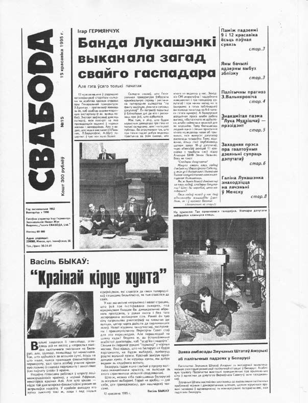 Первая полоса газеты "Свобода" от 15 апреля 1999-го года: