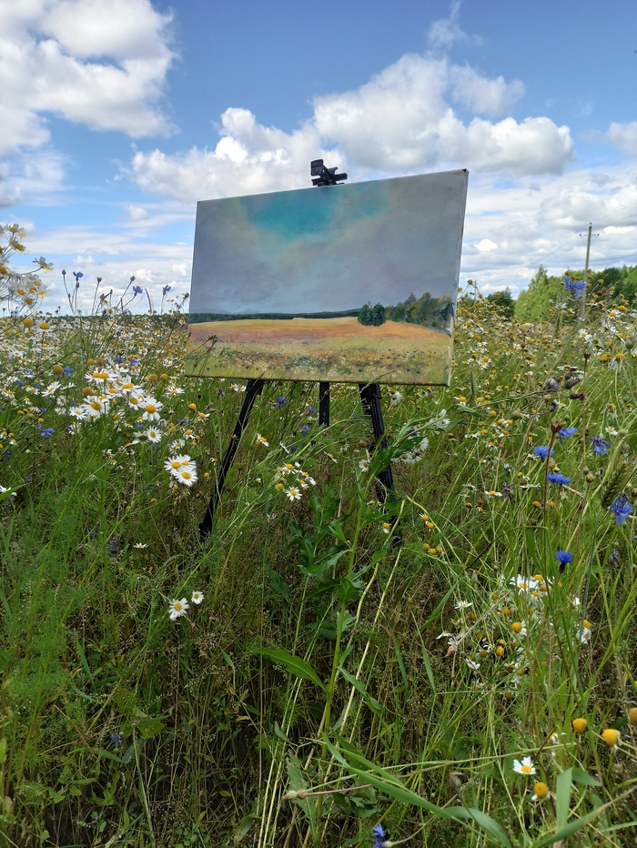 Это было невероятно! Ветерок, ромашки, васильки, простор и масло! Обычно тут лен. А сейчас, видимо, поле отдыхает.