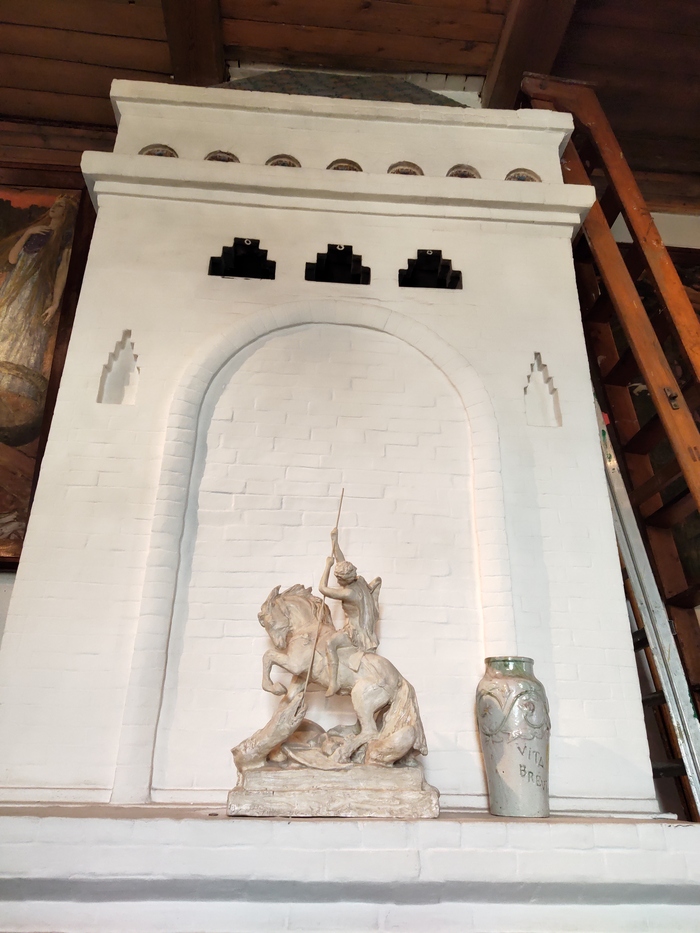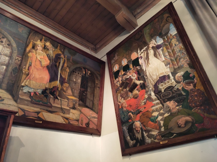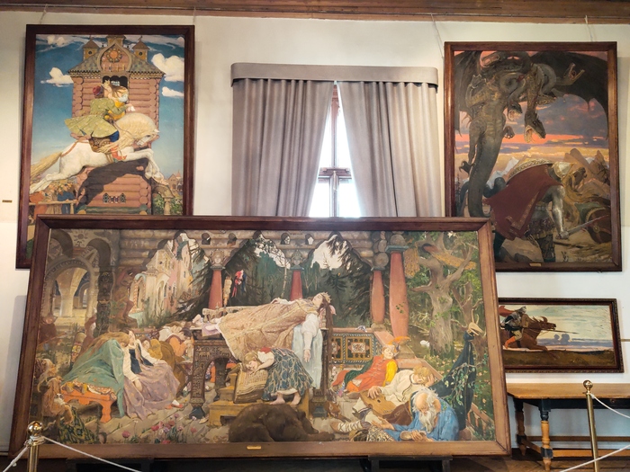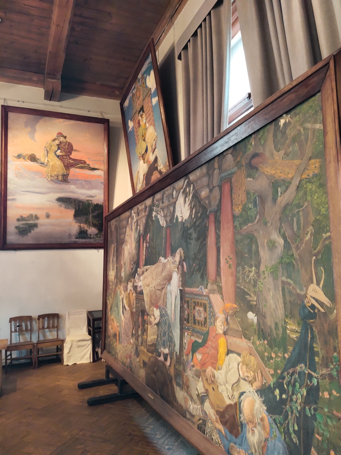 В мастерской были созданы многие знаковые произведения художника. Некоторые из них до сих пор украшают ее стены - в частности, картины из "Поэмы семи сказок". "Богатырская" тема - она звучит в полотнах "Бой Ивана-Царевича с трехглавым змеем" и "Бой Добры-ни Никитича с семиглавым Змеем Горынычем".