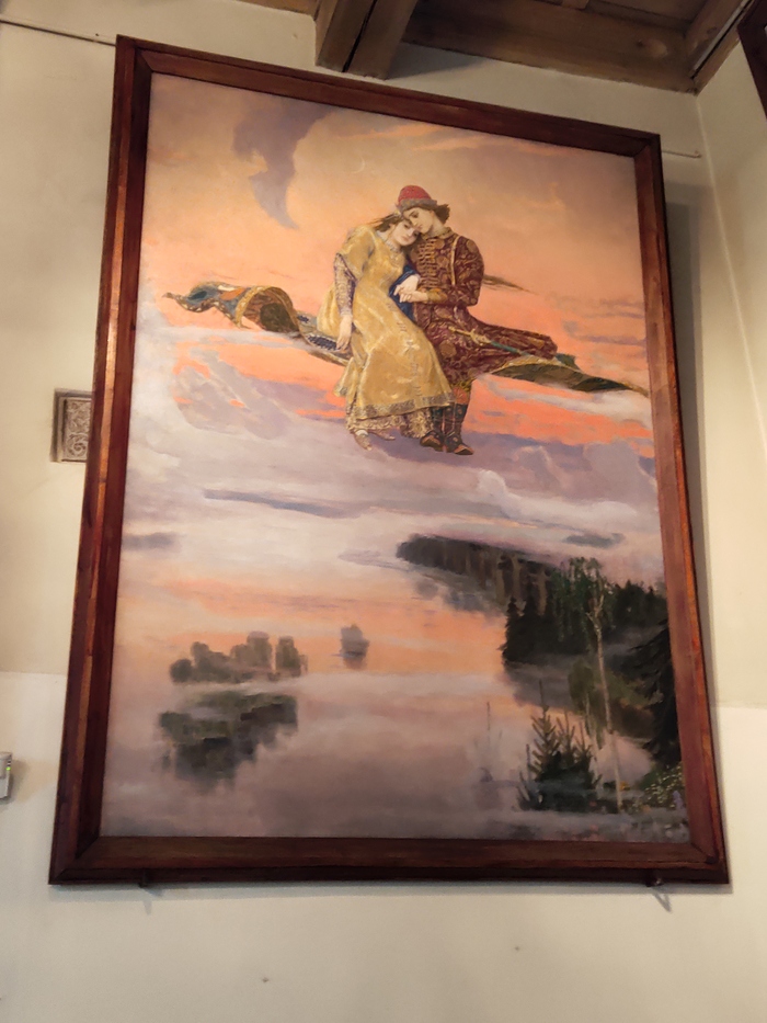 Пройдя по булыжной мостовой, заходим внутрь. В доме можно увидеть уникальную деревянную мебель. Она создавалась в Строгановских и Абрамцевских столярных мастерских по древнерусским образцам, а также по рисункам самого художника.