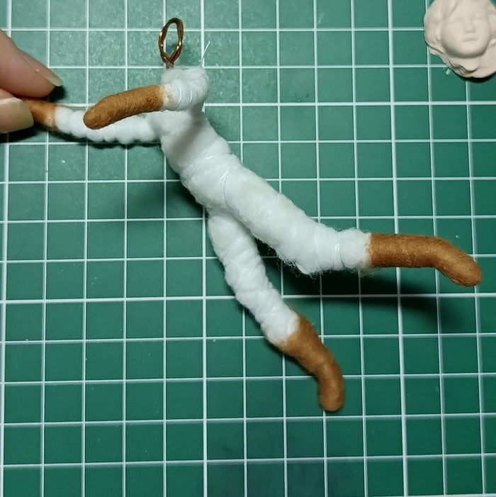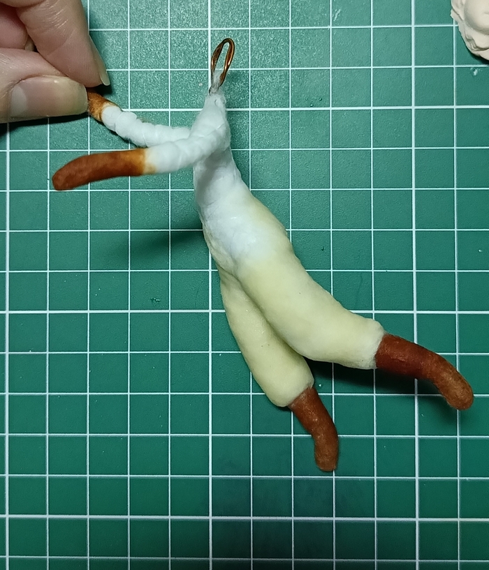 2. Ножки из той же глины, на проволочном каркасе. Ручки тоже на проволочном каркасе, но ватные.