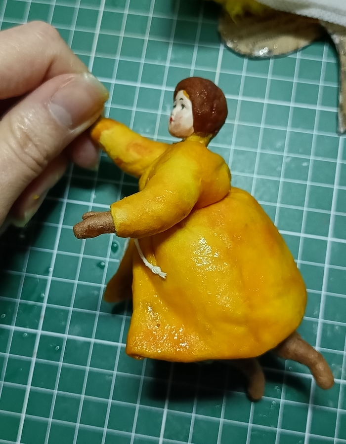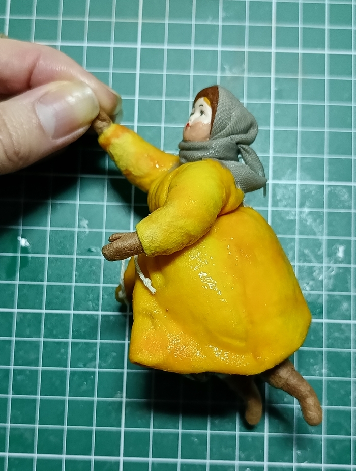 5. Раскрашивала в несколько слоёв. Волосы из синтетической пряжи. Все детали крепила на прозрачный клей момент