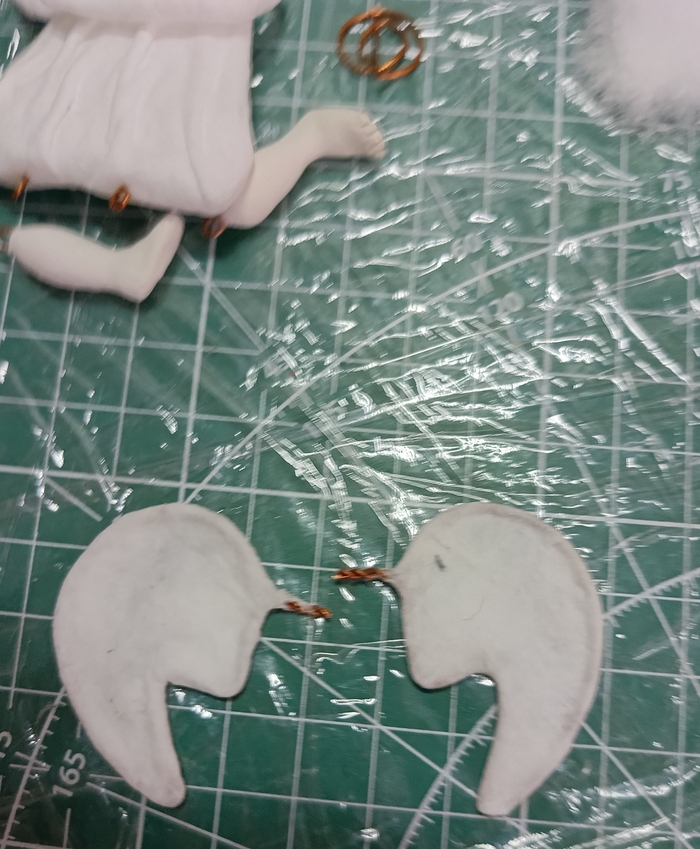 4. Крылья, как и у предыдущего ангела, на проволочной основе, но уже ватные. Рельеф тоже из ваты.