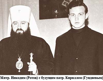 Но "рука КГБ" плохо стыкуется с тем обстоятельством, что Ротов вполне себе их устраивал. Вот, что пишет об этом тот же Гаврилов: "Я тогда только смутно догадывался, что такая духовная карьера требует какого-то компромисса. Когда я митрополиту на это намекнул, он сказал, что без этого компромисса в советских условиях обойтись невозможно, что этот компромисс не является страшным и в духовной жизни не повредит. Митрополит Никодим трактовал сотрудничество с КГБ, как необходимое зло".