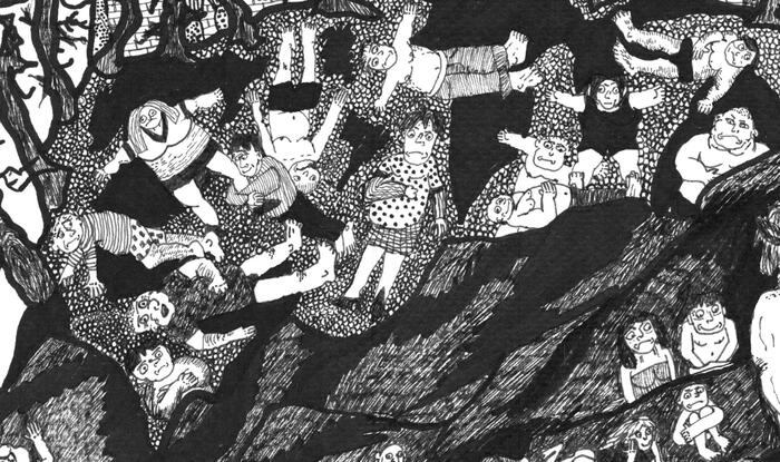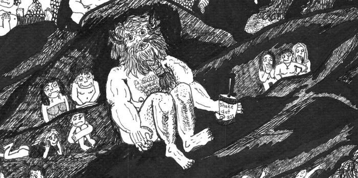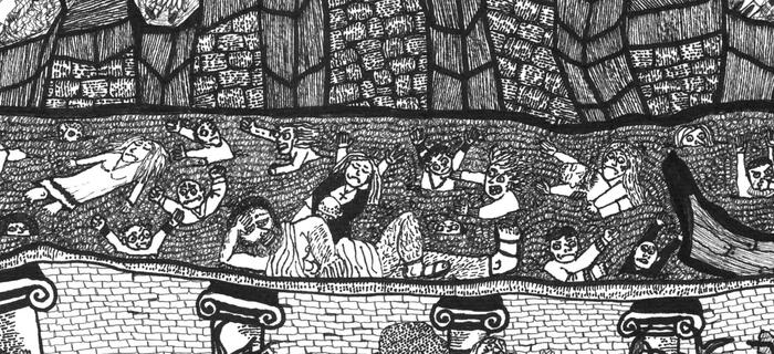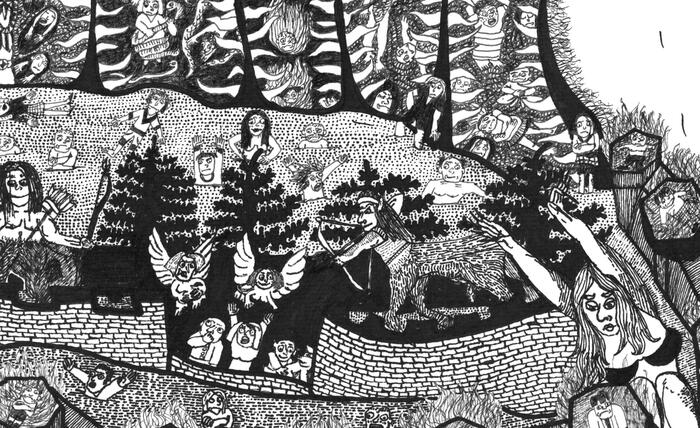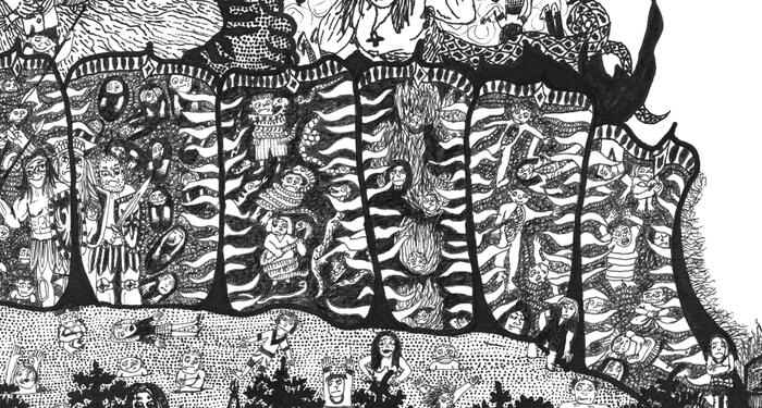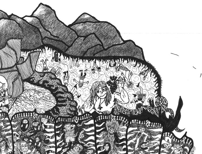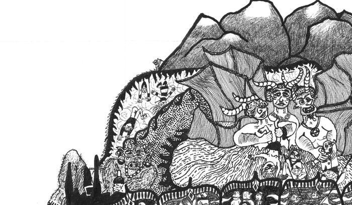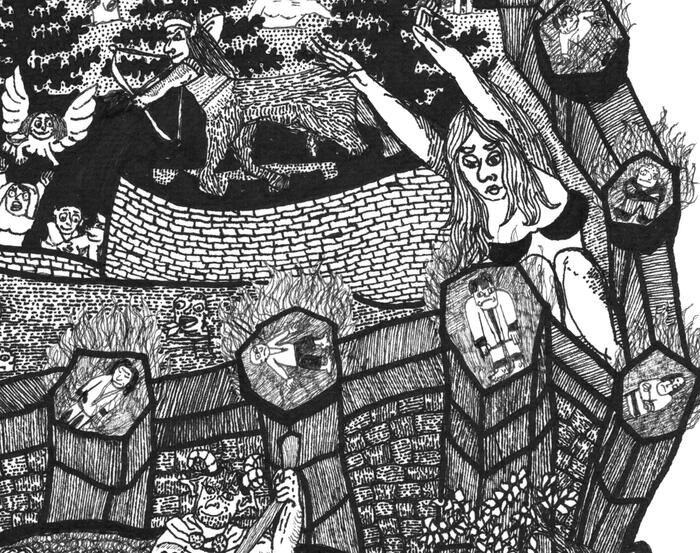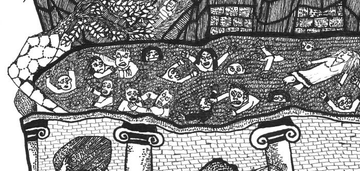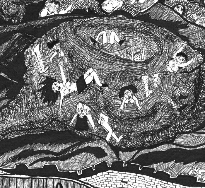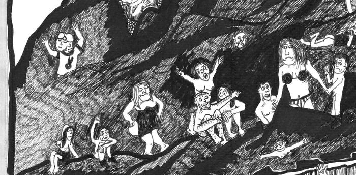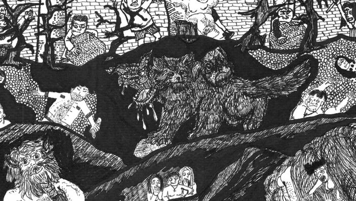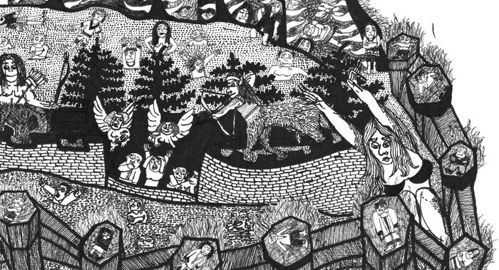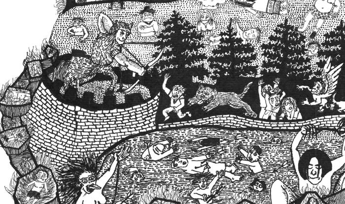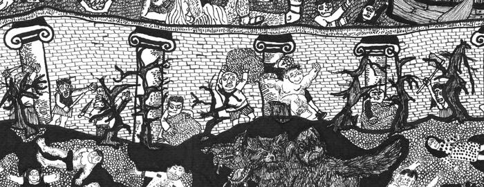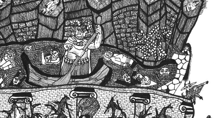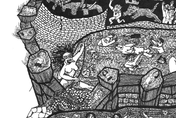 Серия «Возрождение». Ад Данте. Маркер, линер, пивной картон, 2022.