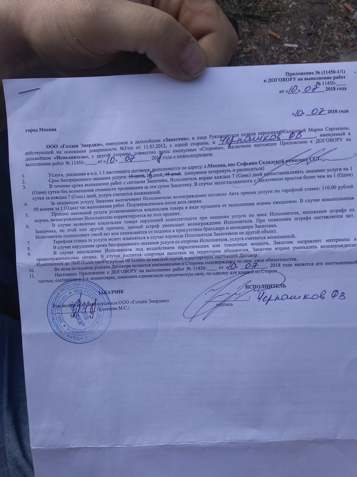 Решил я съездить в Москву на вахту, дабы заработать на обучение. Поискал на Авито, нашел объявление. 1400 смена 35 дней, общежитие бесплатно, обед тоже. И вроде все хорошо. Позвонил, приехал. Смс-кой направили непосредственно на объект, в офис заезжать не нужно. Ну думаю "хорошо" по Москве не мотаться. В смс дали адресс: