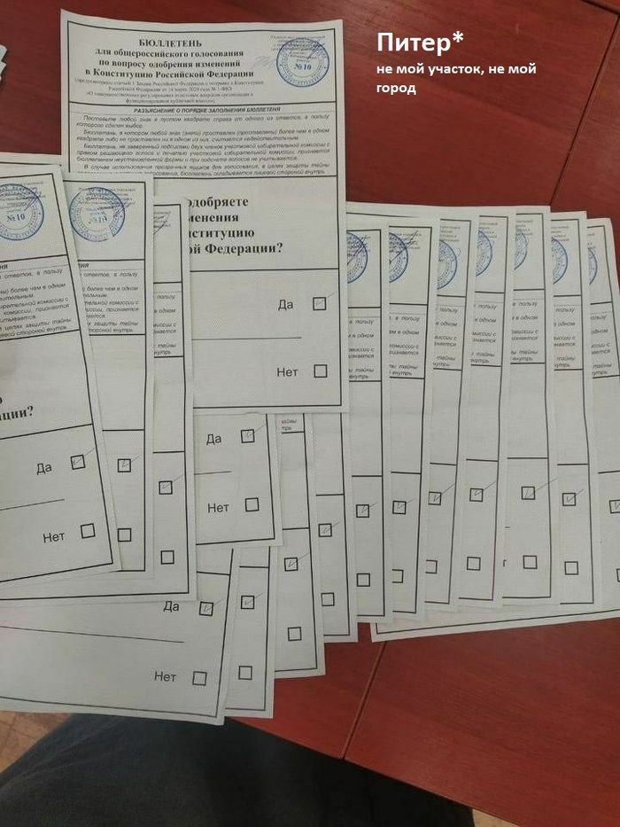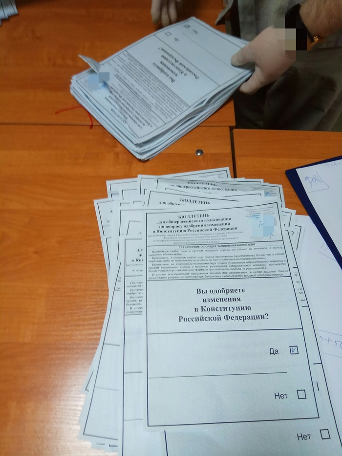 Затем открыли сейф пакеты с досрочниками. И я офигел. Ровные гладкие бюллетени с одинаковыми галочками ЗА. Для примера: в моей стопке для пересчета было 118 за подряд. ни одного Против или н/д. У соседа было аналогично: 130 ЗА. При подсчете он всё приговаривал "как же так, я же сам видел, что были НЕТ"