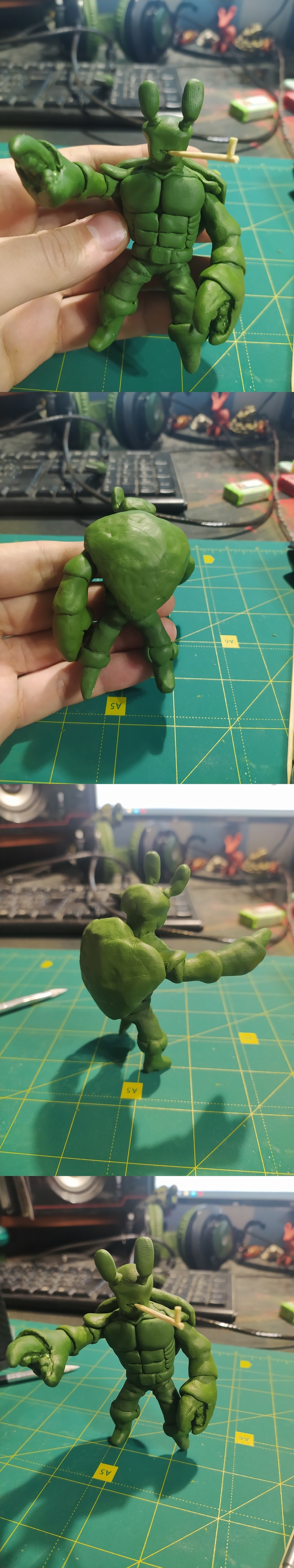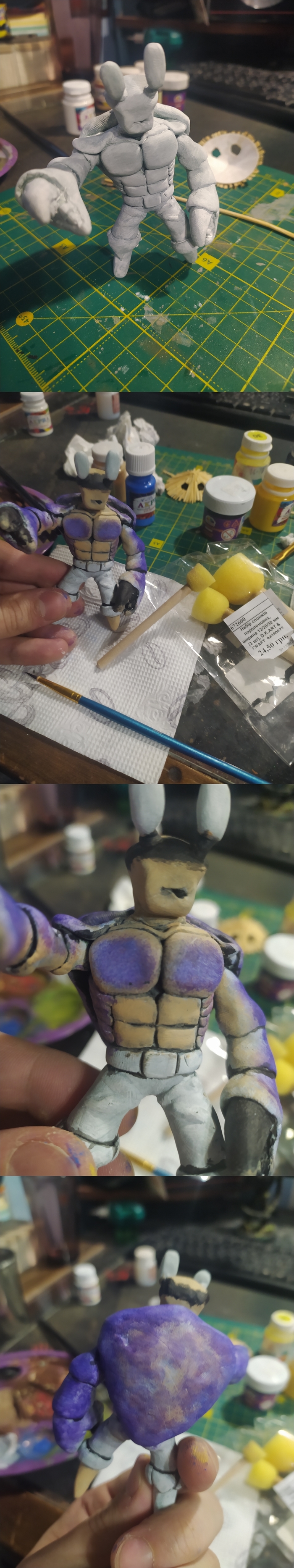 Далее облепляем глиной. Взял зелёный цвет, так как он мой любимый. И тем более всё равно закрашивать.