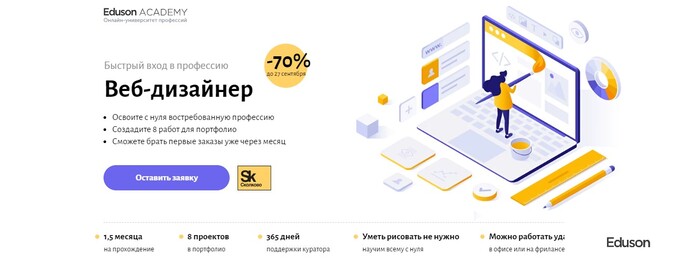 3. Eduson Academy — обучение веб-дизайну с нуля и стажировкой у партнёров