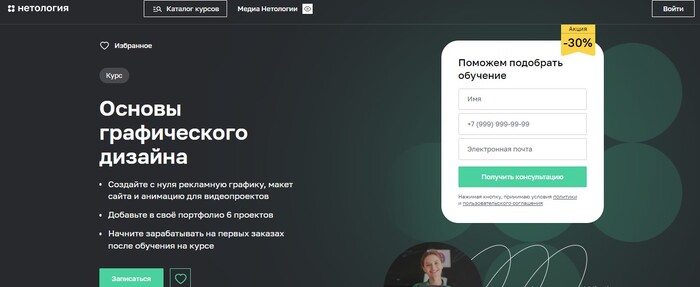2. Нетология — обучение веб-дизайну для начинающих с практикой и портфолио