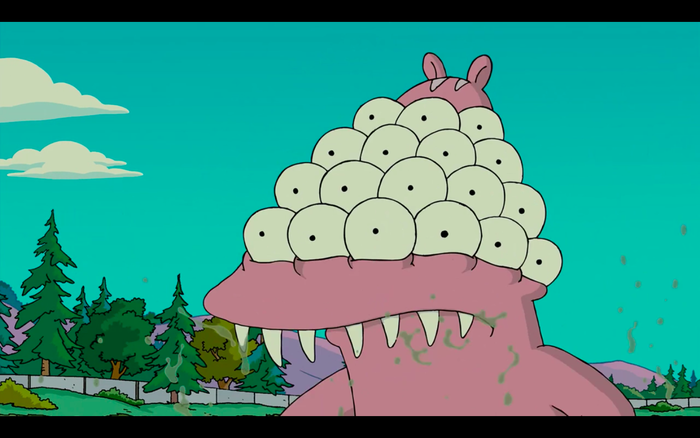 Вероятно, жителям города могло бы повезти, если бы Гомер Симпсон не завёл себе поросёнка, производящего поразительное количество отходов. Разумеется, жёлтый любитель пива не стал утилизировать отходы и безответственно подкинул их в озеро Спрингфилд. Очевидно, что это спровоцировало и ускорило экологический кризис, который мультипликаторы показали пугающе и гипертрофированно. Чего стоит многоглазая белка, которая вынырнула из озера.