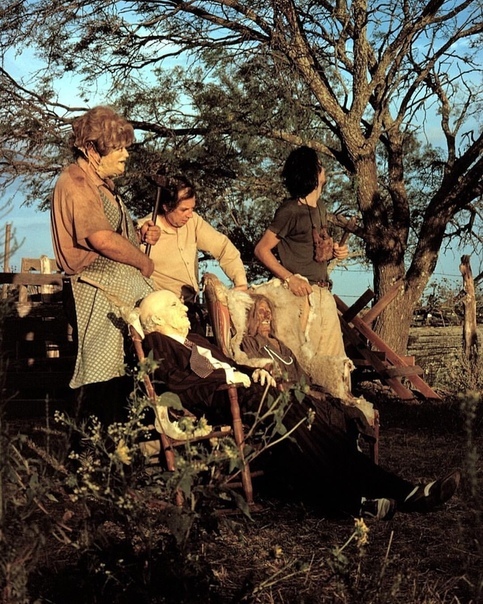 На съёмочной площадке фильма Техасская резня бензопилой 1974 год.