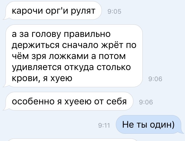 Маты, крик...Заходит, кричит на меня и смеётся - "я подумала у меня крыша едет".