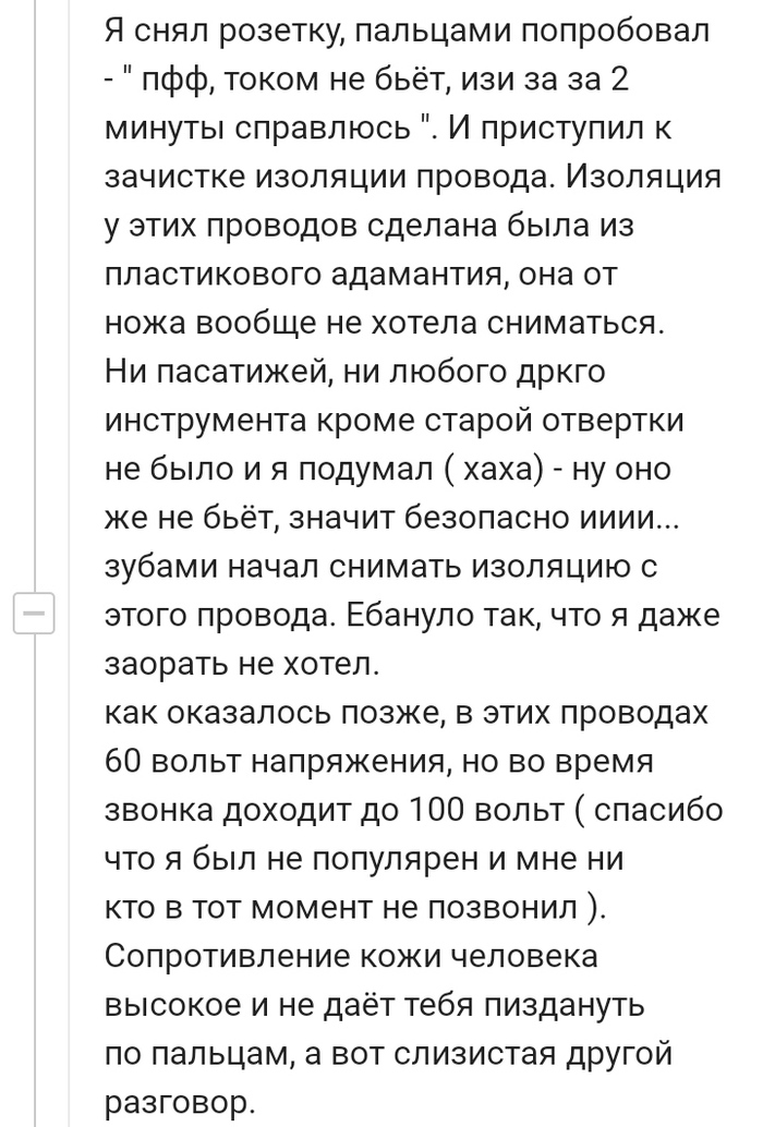 ...и тут монтажник (инженер который) дорвался до щита. Поворачивает ключ и...бабах. Дверь на растопашку как спинка открылась и мотня проводов вывалилась. Его дверью как взрывной волной откинуло.
