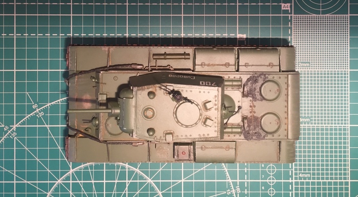 Покрыл танк глянцевым лаком, выполнил смывку темной смывкой от МиГ. Места скола циммерита окрашены в Чиппинг от Аммо. Троса в смесь его и ган метала, как и инструмент. Окрасил шанец. медленно ползем к завершению.