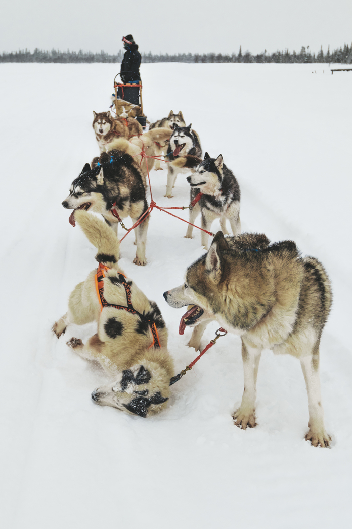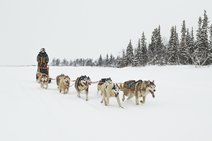 Далее мы поехали к заводчикам хаски, где они нам устроили покатухи на собачих упряжках.