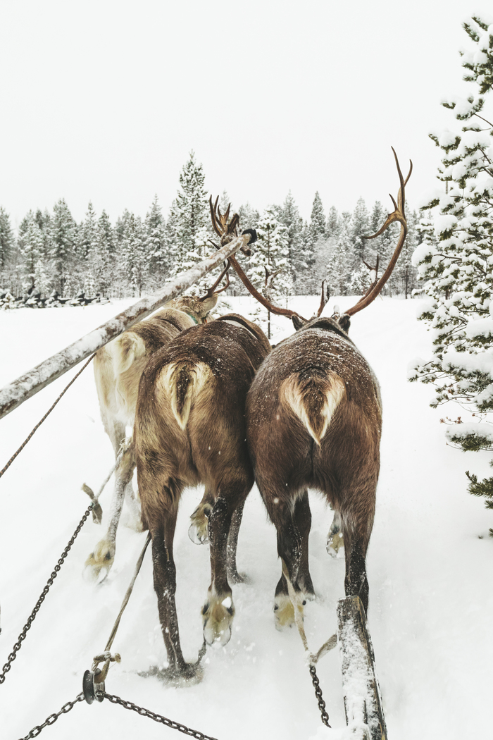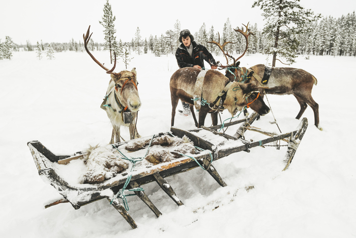 После чаепития нам предложили покататься на санях запряженными оленями.