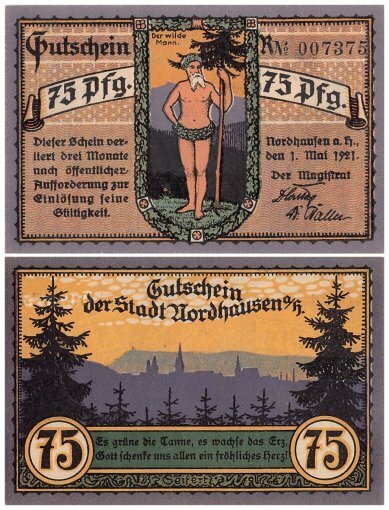 Нордхаузен. 75 пфеннигов 1921 года. Не такой уж и дикий вид у Дикаря.