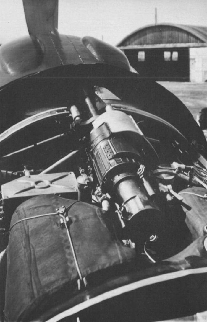 А узкий по сравнению с тем же М-90 двигатель М-82 позволил обмотать вокруг себя просто жуткую батарею из ТРЕХ пушек ШВАК и двух пулеметов ШКАС. Все это синхронизировалось с двигателем. Но еще в корень каждого крыла можно было установить ШКАС. То есть – три пушки и четыре пулемета. Причем, пушки размещались не в крыле, а значит, стреляли намного точнее, чем у того же «Фокке-Вульфа». А ШКАСу с его скорострельностью было непринципиально, где стоять, он свои 1800 в минуту высыпал откуда угодно.