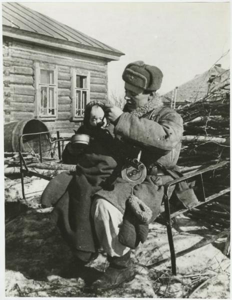 Моисеев кормит девочку в деревне Извеково