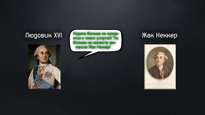 Король не собирался сдаваться: 11 июля он уволил министра финансов Неккера, который поддерживал третье сословие.