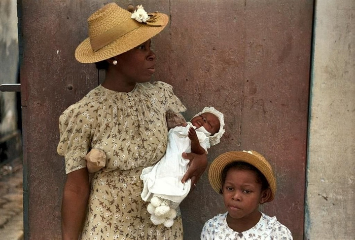 Шарлотта-Амалия, остров Сент-Томас, Виргинские острова. Мать с детьми кого-то ждут на главной улице, 1941 год.