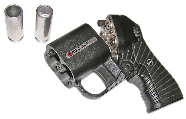 Пеппербоксы в России: "Оса". Известный современный травматический пистолет ПБ 4-1 МЛ «Оса» также можно отнести к пеппербоксам. Правда, вращающихся деталей у крошечного пистолетика нет, зато ствола целых четыре. «Оса» относится к «огнестрельному бесствольному» семейству оружия – оно разрешено к гражданскому обороту на территории РФ. В «Осе» используется патрон 18x45 с резиновой пулей диаметром 15,3 мм, а капсюль инициализируется не ударом бойка, а электрическим током.