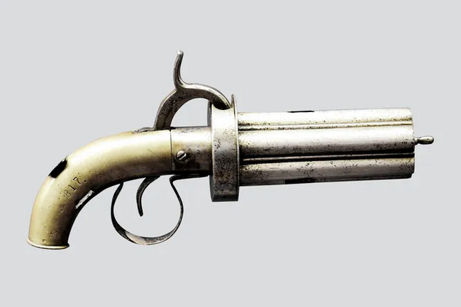 Французский пеппербокс-стилет XIX века из коллекции Тульского музея. Схема пеппербокса позволяла «окружить» стволами любую круглую или многогранную трубку.