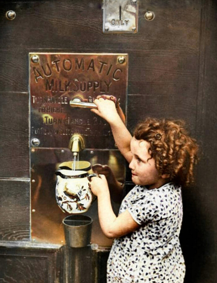 Автомат по продаже молока в Лондоне, Англия, около 1931 года.