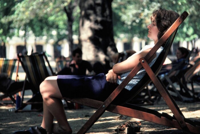 Девушка читает книгу «Секс и Христианин», парк Оксфордского университета, 1960-е годы.