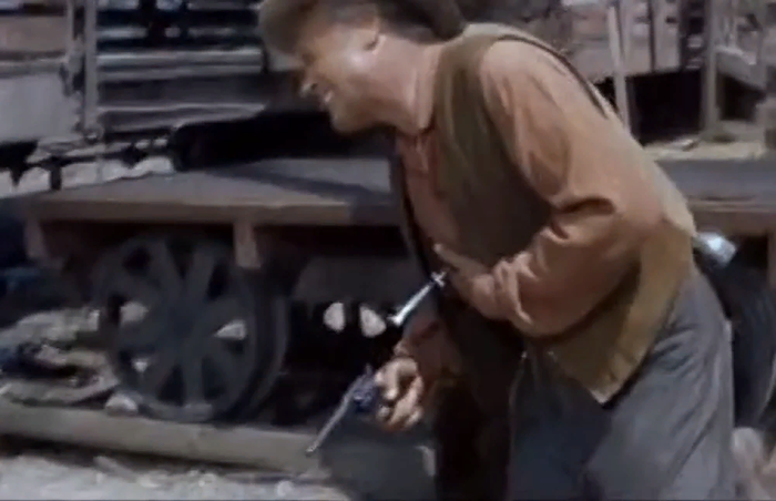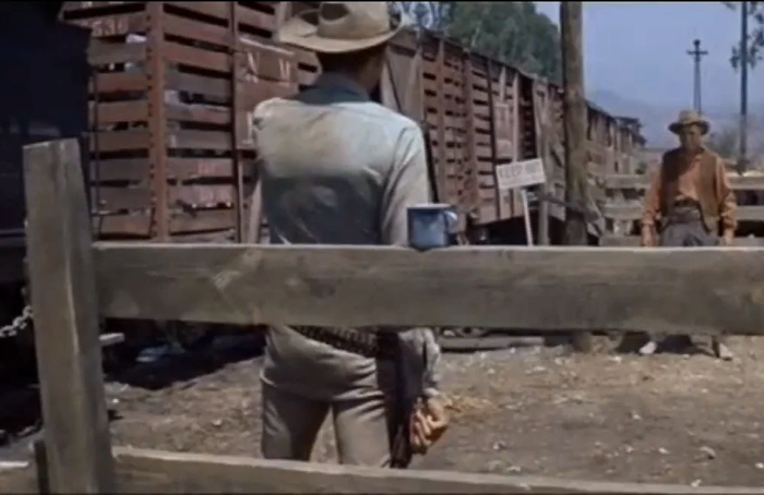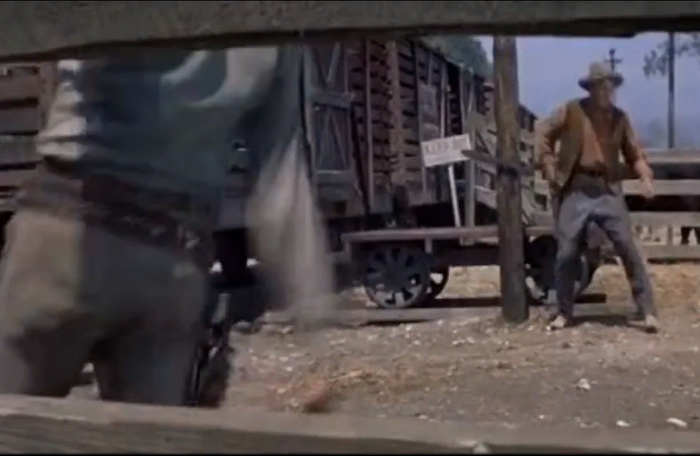 Разговор же наш пойдёт сегодня о небольшом эпизоде в начале фильма. Где один ретивый ковбой не даёт другому покоя считая того обманщиком. Ну вот ни как ему не вериться, что можно метнуть нож быстрее чем он выстрелит из револьвера.